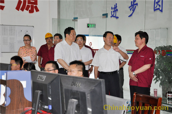 6月20日下午,阜陽市市委副書記葉露中一行在阜陽市經信委主任岳華剛的陪同下深入昊源公司調研。公司黨委副書記李繼忠、副總經理凡殿才、高玉磊、田懷廣等公司領導陪同調研。