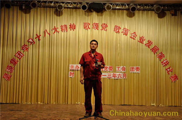 凝聚正能量,放飛中國夢。6月29日下午,昊源公司慶祝建黨92周年演講比賽在公司大禮堂舉行。來自各基層黨支部的15位選手以滿腔的熱情講述了自己對黨深厚的感情,不時引起觀眾情感共鳴和陣陣掌聲。