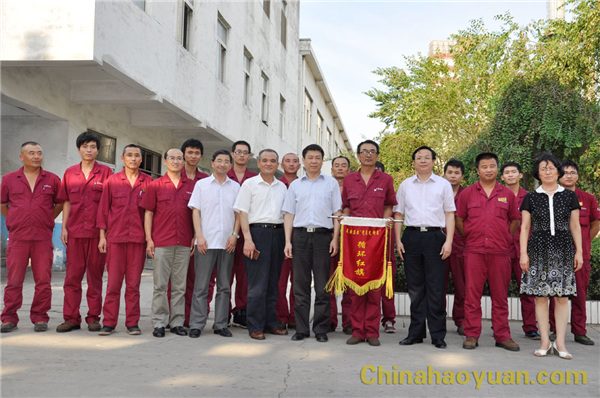 隨后,在李繼忠、田懷廣、張海生等公司領導陪同下,李亞東處長一行又深入到生產一線,為公司7月份“黨員文明崗位”獲得單位聯合車間進行授旗,并與黨員代表合影留念。