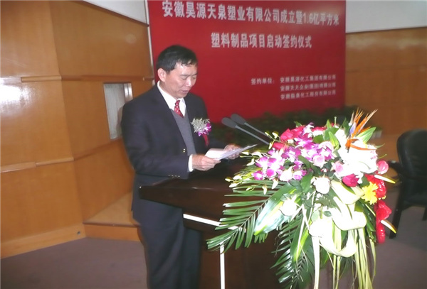 簽約儀式上,昊源集團饒金鐸董事長信心百倍地說:“我們堅信,在市委、市政府和社會各界的大力支持下,天大集團、臨化股份、昊源集團精誠團結合作,安徽昊源天泉塑業有限公司必將取得驕人的發展成果,必將為阜陽的經濟建設做出新的貢獻!”