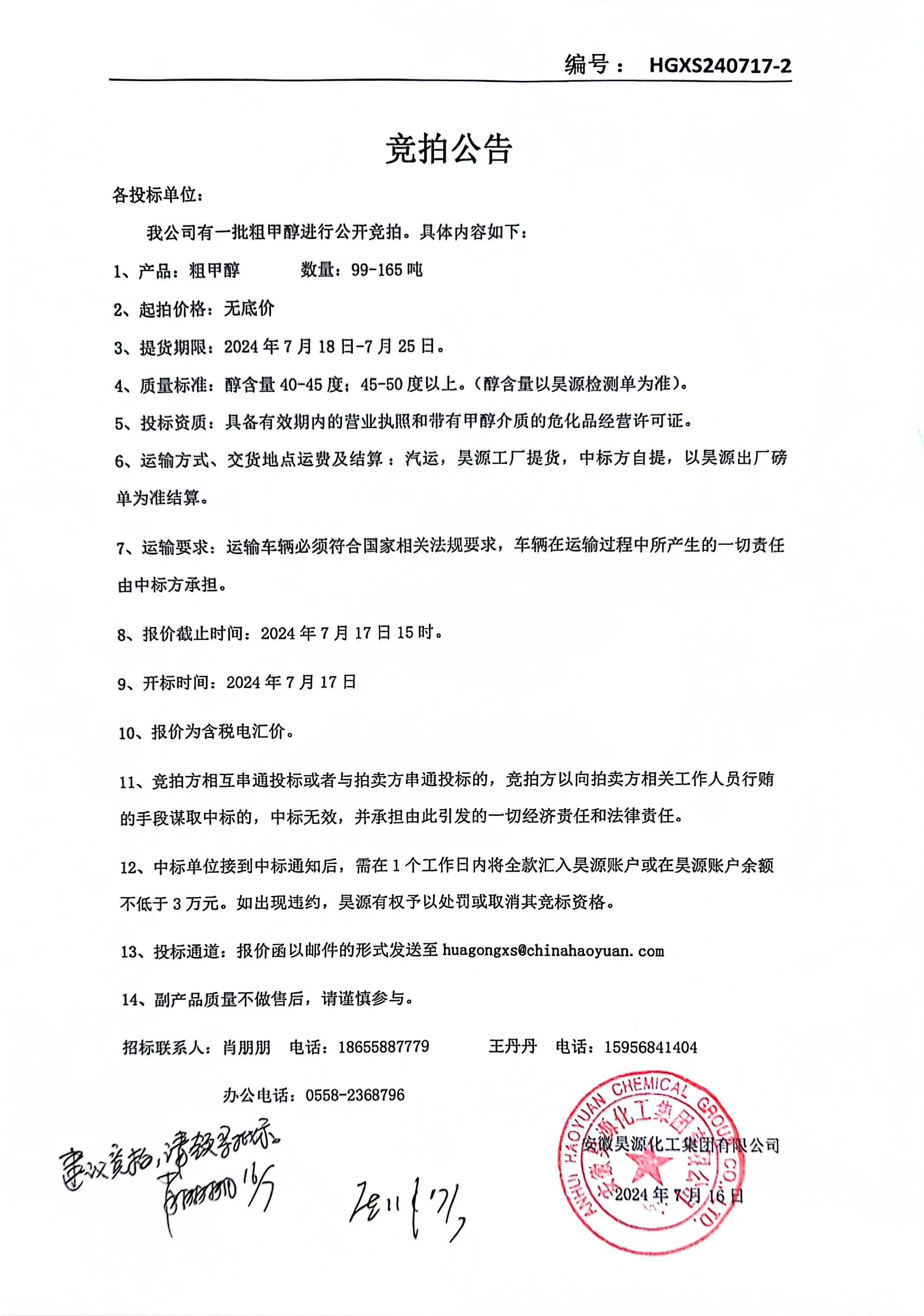 上一條:化工銷售甲苯招標公告下一條:化工銷售公司粗甲醇招標公告
